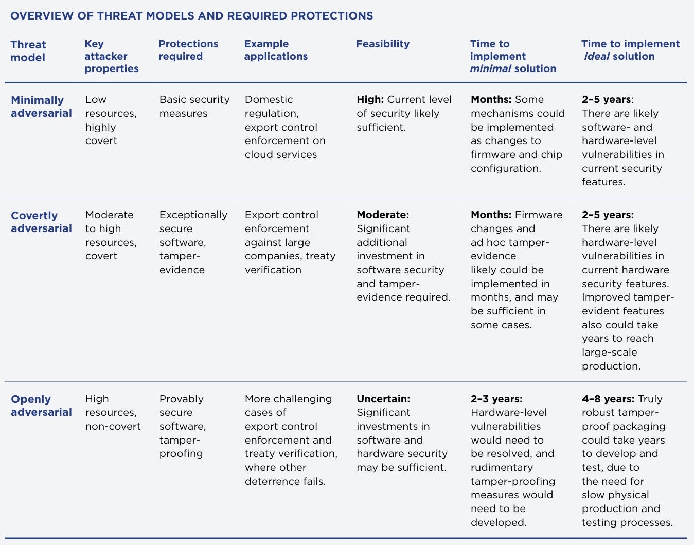But how much? This seems very unclear, because: 1) this report doesn’t provide cost estimates, 2) the report appears to assume chip companies lead HEM development, which hasn’t been the case for tamper-evidence and tamper-proofing efforts so far, and 3) there is limited information online about exactly how secure current solutions (e.g. from Tamper Sec and Earendil) are compared to the optimal solutions outlined by CNAS.